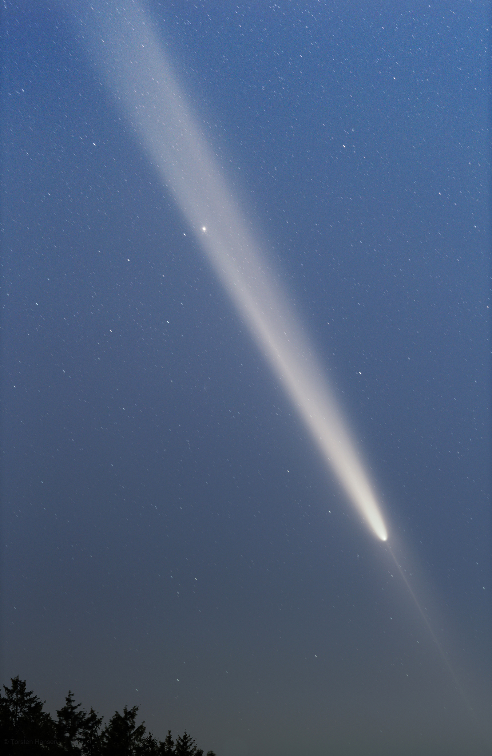 Ich stand 70 Kilometer nördlich von Graz in Hochart bei Pinkafeld. Der Komet war in der Dämmerung gut freisichtig, dieses Mal mit echten 10 Grad Schweif. Die Helligkeit ist auf 2mag gesunken.
